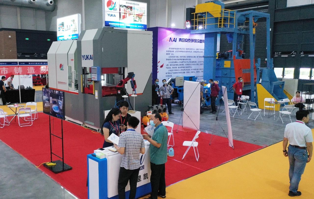 本屆博覽會青島西海岸新區鑄造機械制造協會展團精心組織了青島盛美機械、青島安泰重工、濱海金成等10余家企業參展,展會期間達成框架合作協議和訂單近百項。企業集中展示了包括砂處理設備、造型制芯設備、拋噴丸清理設備、環保除塵設備、自動打磨設備及工業機器人等,參展設備技術工藝均在全國處于領先水平。通過組團參展不僅助力了區內鑄造機械企業復工復產,而且有效提升了全區鑄造裝備企業的知名度和影響力。